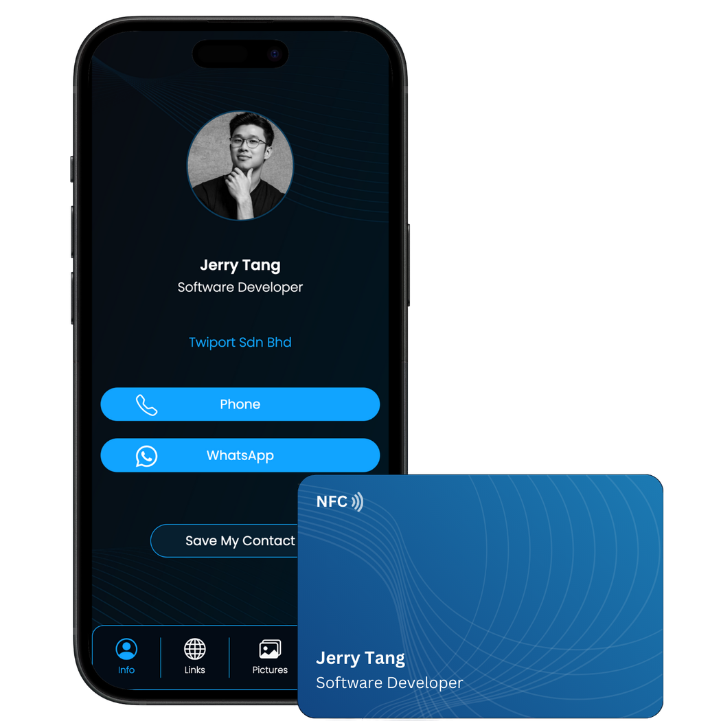 It’s a modern, eco-friendly alternative to traditional business cards, ensuring your information is always up-to-date and easy to access.